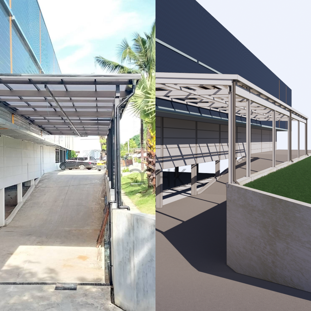 การก่อสร้างหลังคาที่อยู่ติดกับโรงงานจะมีวัตถุประสงค์สองประการ: จะให้ที่กำบังจากฝนและแสงแดด ลดความร้อนในพื้นที่จอดรถ และสร้างการแบ่งแยกที่ชัดเจนสำหรับทางเดินด้านข้าง